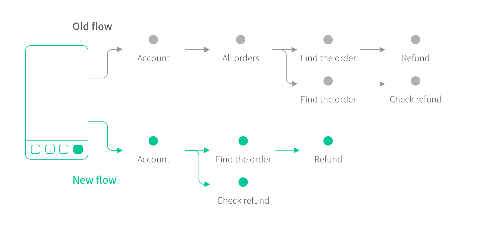 When we were researching the page click rates, we found that a lot of users directly went to the order list. After we analysed the user flows, we realised one important thing — customers who shop online refund their orders quite a lot. If you want them to shop fast, you need to allow them to refund fast.