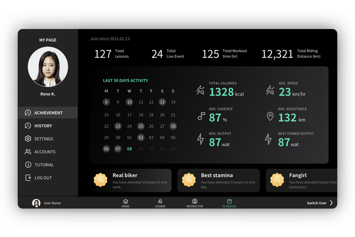 Users don’t have that many tasks to do on a bike. We didn’t want to overwhelm the user with too many features. Instead, we focused on the most personalised features, such as statistic tracking, class booking, and of course following their favourite classes and coaches.